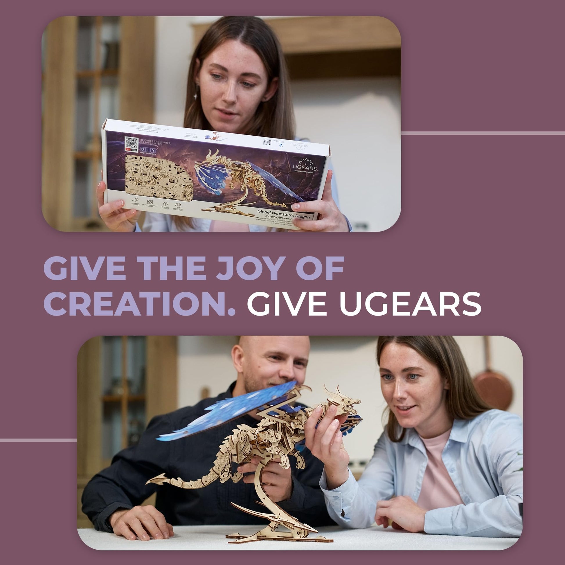 UGEARS 3D Wooden Puzzles for Adults - Windstorm Dragon 3D Puzzle - Mechanical Model Kits for Adults to Build - DIY Building Set Gifts for Christmas, Brain Teaser Puzzle, Hobby Kit