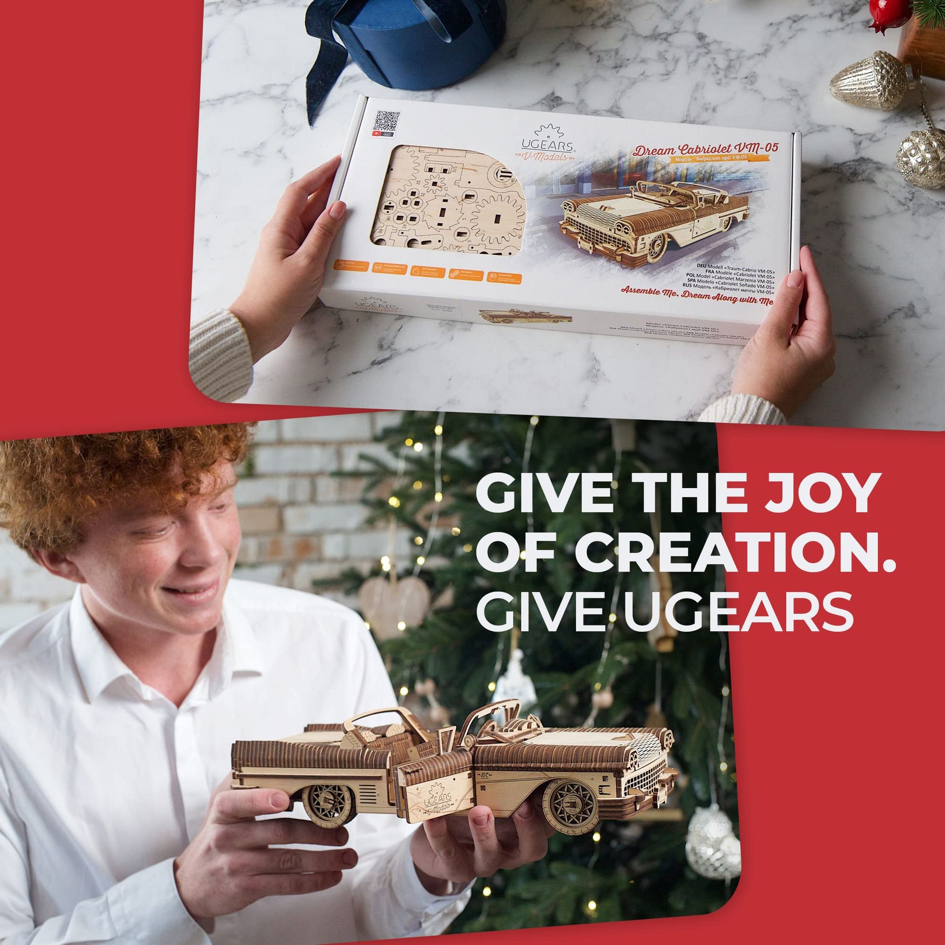 - Retro Design & Functionality: Inspired by 1950s American cars, the UGEARS Dream Cabriolet VM-05 3D puzzle features a V8 engine with moving pistons, functional doors, and a trunk with a winding knob