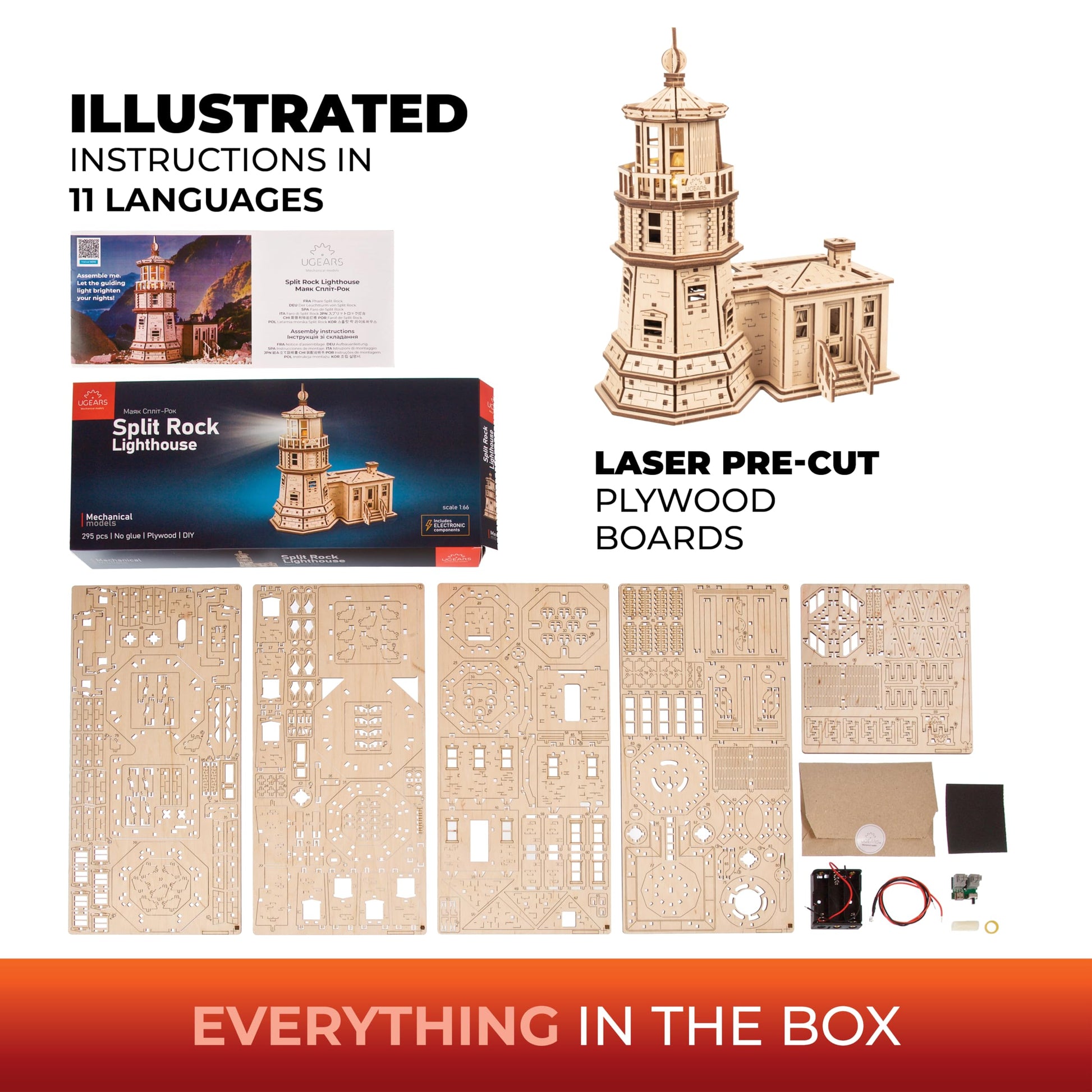 - Iconic Lighthouse Model Kits For Adults: Recreate the historic Split Rock Lighthouse with this detailed UGEARS wooden 3d puzzles for adults, perfect for model enthusiasts and lighthouse lovers.