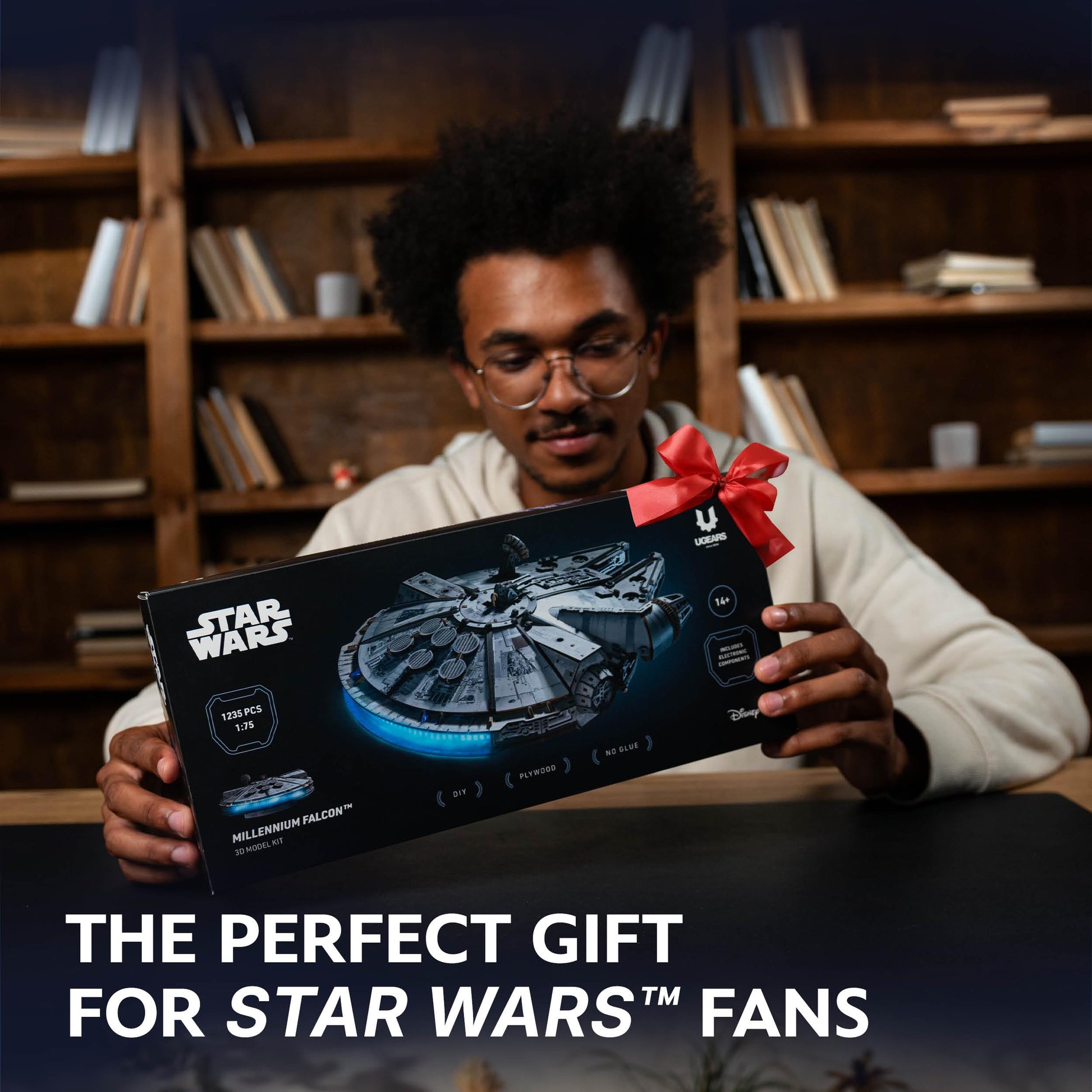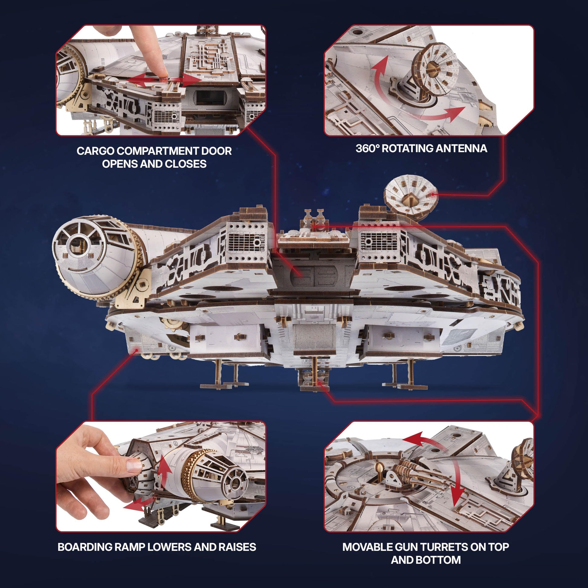 UGEARS Star Wars ™ Millennium Falcon™ 3D Wooden Puzzles for Adults - DIY Mechanical Model Kit, 3D Puzzle Brain Teaser Puzzles for Adults, Wood Model Building Kits, Hobbies for Men and Women