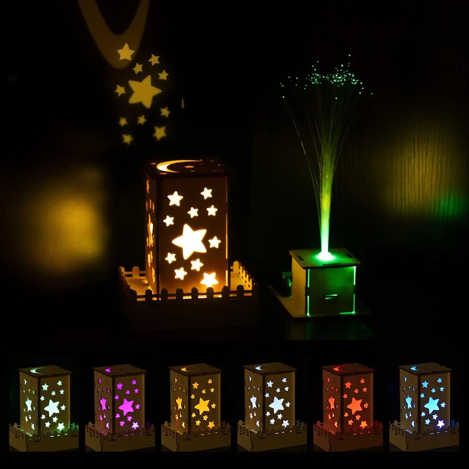 🏆【5 in 1 STEM Kits】: Designed by the theme of amusement parks with fond memories of childhood. The wooden craft kits contain a rotating Ferris wheel, a merry-go-round, a mini windmill house, a fiber optic lamp and a star nightlight with seven kinds of lights.