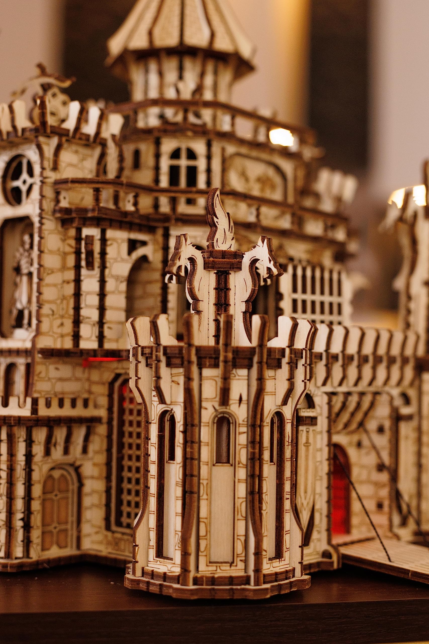 - INTRICATE & ENGAGING - Immerse yourself in medieval enchantment with our Castle 3D Wooden Puzzle. Experience moving parts, mesmerizing red LED backlit effects, and exquisite attention to detail. Enjoy hours of engaging fun while enhancing cognitive skills. Proudly showcase your masterpiece