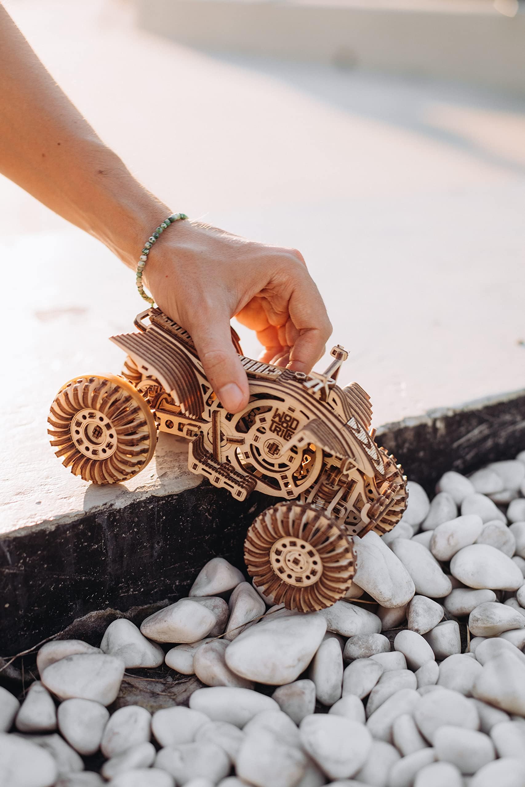 - INTERACTIVE DESIGN - Developed by professional engineers, this model kit for adults will fascinate all 3D puzzle fans by its mechanical filling and assembly forethought. Powered by a spring motor, this wooden quad bike can travel up to 30 ft (9 meters) at once
