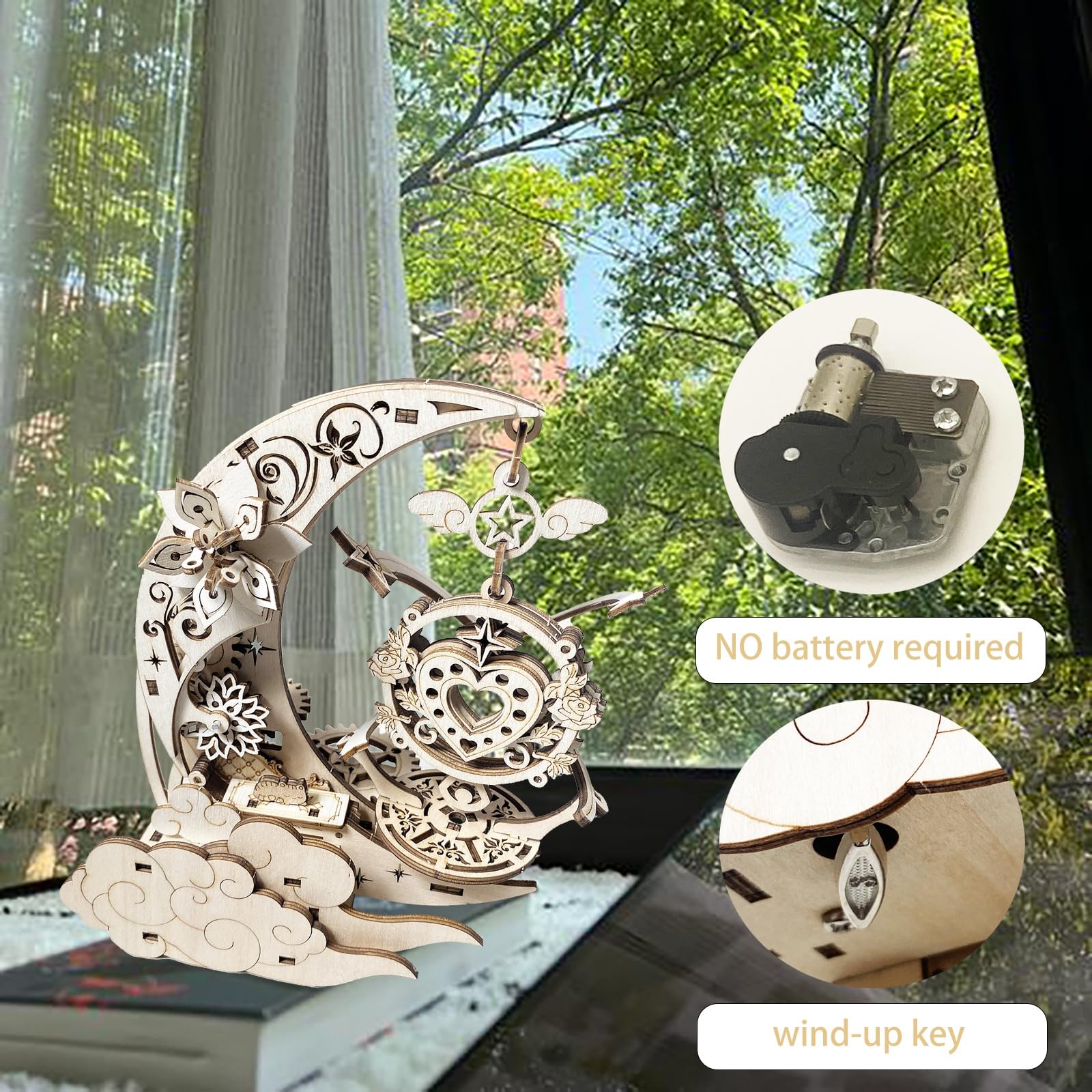 Wooden 3D Puzzle for Adults Mechanical Music Box Model Kits Wood DIY Crafts Kit Jigsaw Puzzle for Age 14+ Years Old
