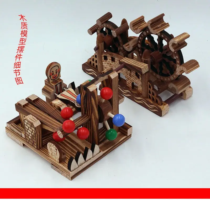 Wooden Ancient Well Imitation Farm Tools Windmill Wooden Mill Model Gift Small Ornament Craft