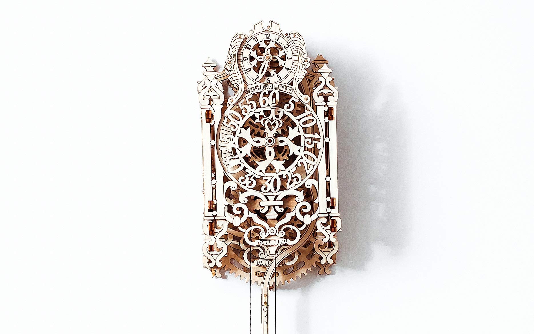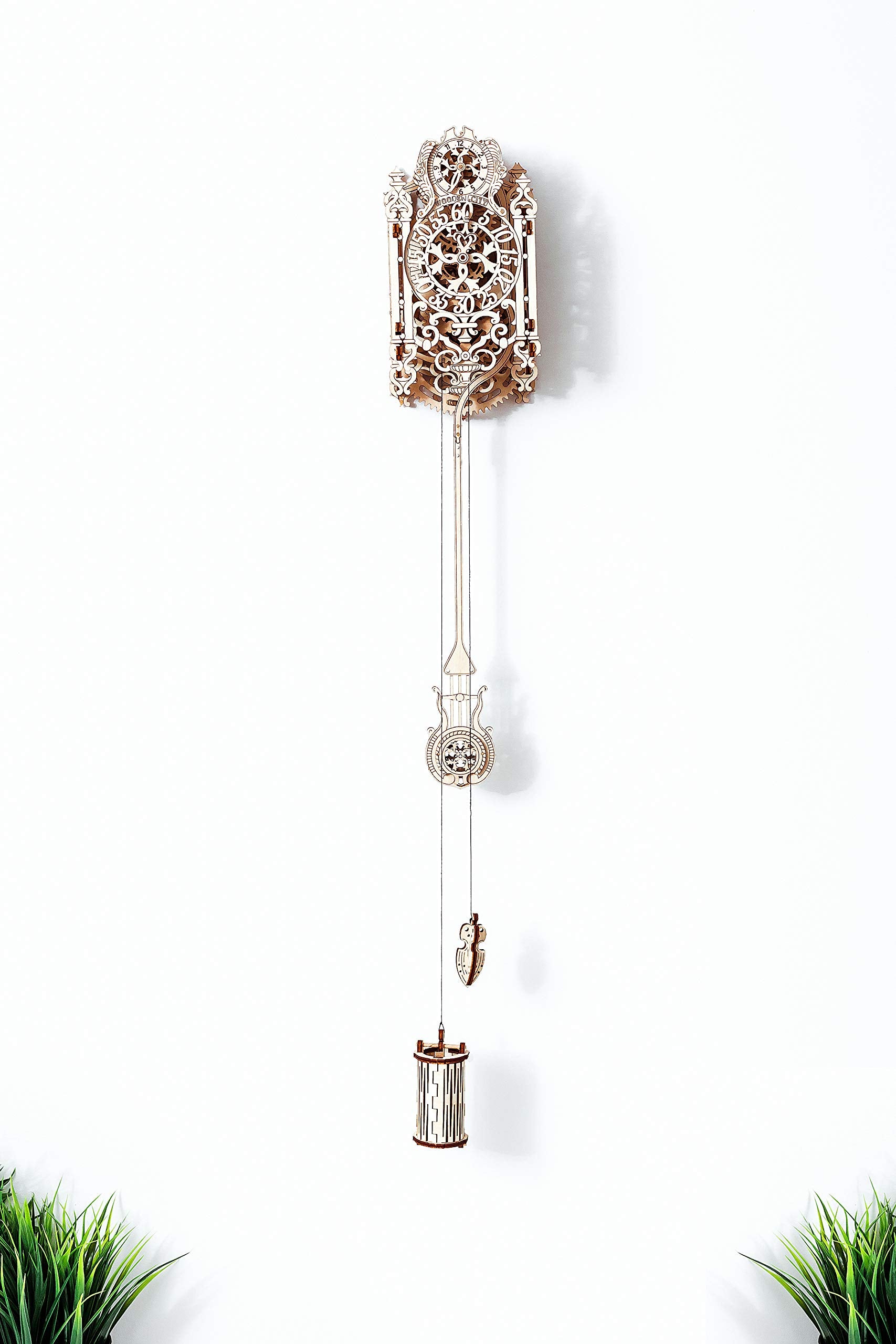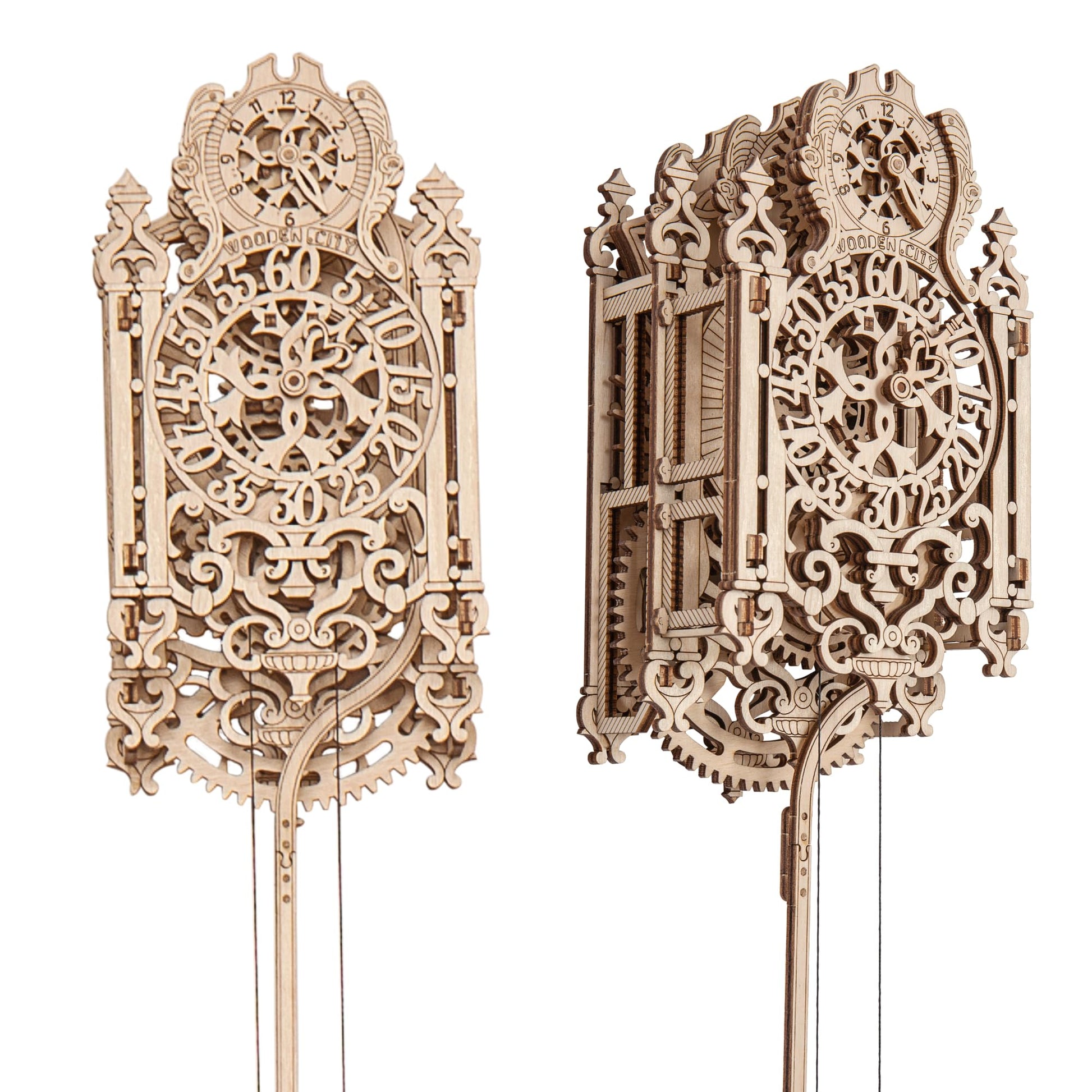 - 121 laser-cut birch plywood pieces assemble into an elegant Royal wall clock with pendulum and gears; spare parts included for reliability