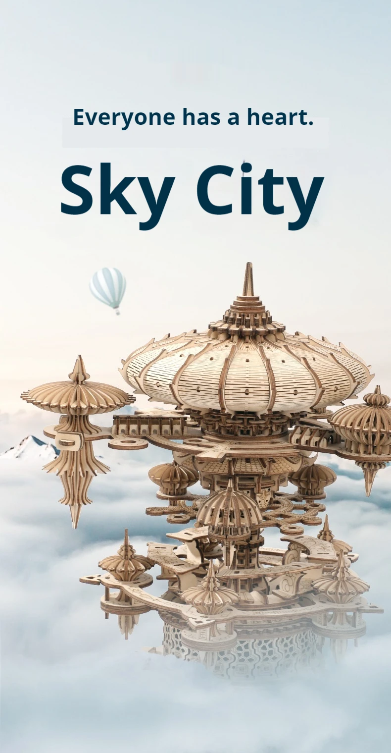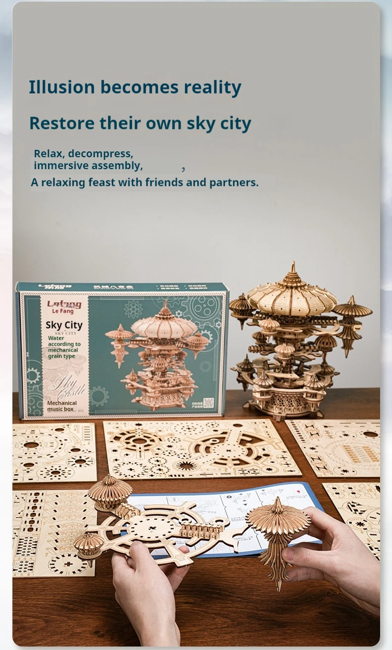 Wooden Handmade 3d Music Box Assembly Building Blocks Sky City Handmade Diy Building Block Model Decoration Kit Gifts For Adults